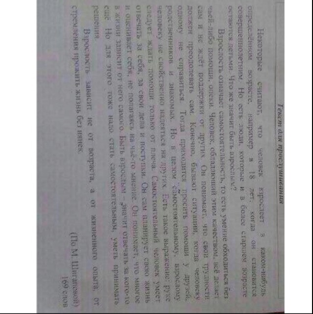 Взрослость означает самостоятельность . Человек , обладающим этим качеством , всё делает сам. Он понимает, что свои трудности должен преодолевать сам и не ждёт поддержки от других.Иногда приходится просить помощи у близких людей , но в целом , взрослому человеку не свойственно надеяться на других .