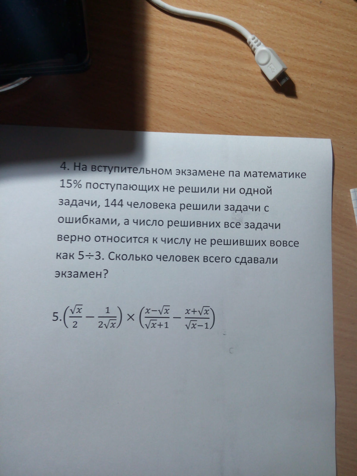 число решивших относится к числу не решивших как 5 к 3, так как число решивших составляет 15%, то
