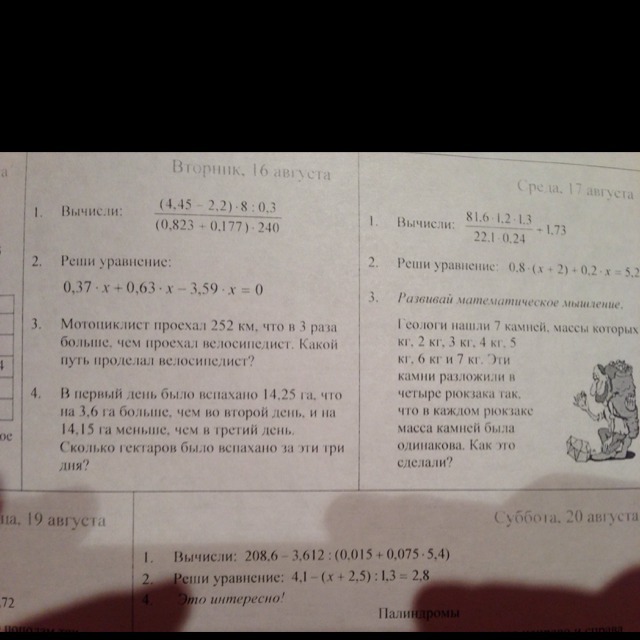 1) 14,25 - 3,6 = 10,65 ( га ) во 2-ой день