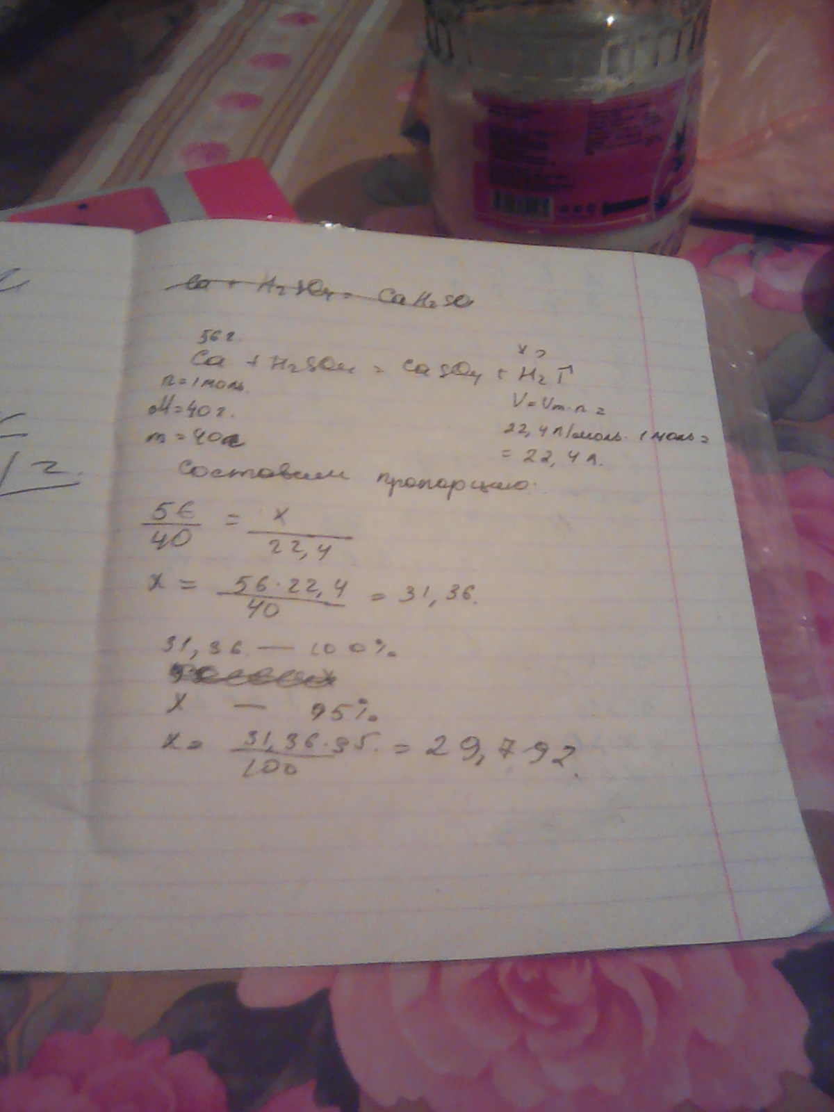 Какой обьем водорода выделится при взаимодействии 56гр кальция с серной кислотой если выход реакции 95%