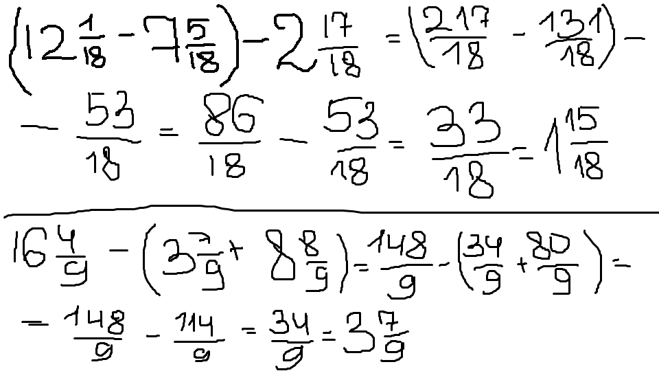 Помогите please по матеки № 10 из разности чисел 12 1/18 и 7 5/18 вычесть 2 1718 и следлущие из 16 4/9 вычесть сумму чисел 3 7/9 и 8 8/9