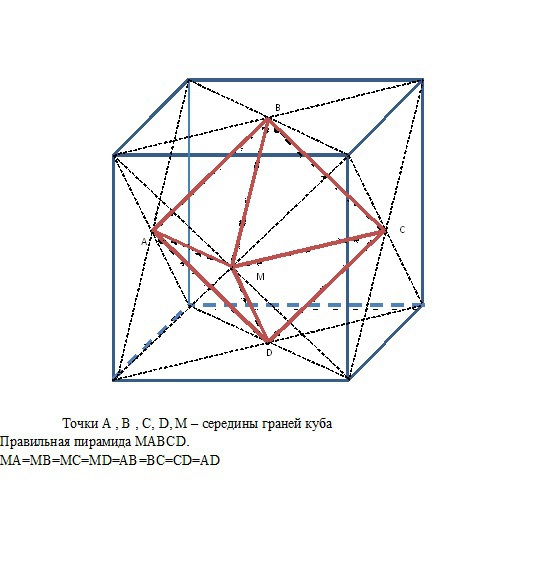 Вершины некоторого многогранника являются центрами пяти граней куба.Как называется этот многогранник?Сделать рисунок и отметить равные рёбра этого многогранника.