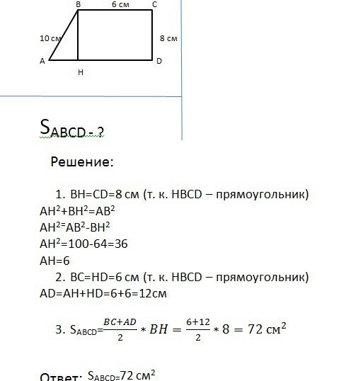 Менша основа прямокутної трапеції дорвнює 6 см, а бічні сторонни – 8 см і 10 см.