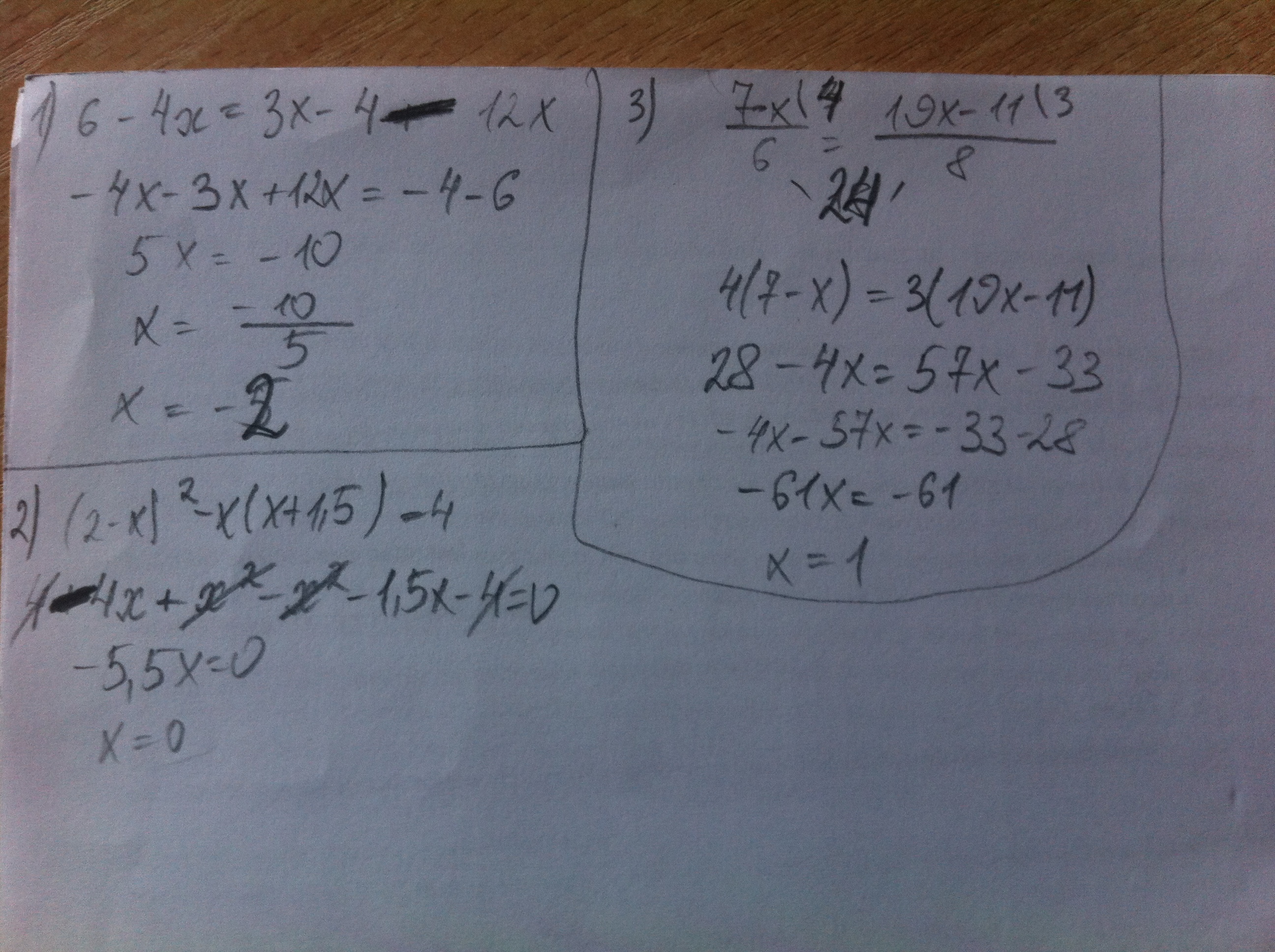 3)(7-х)/6=(19x-11)/8 (умножаем левую и правую части на 48)