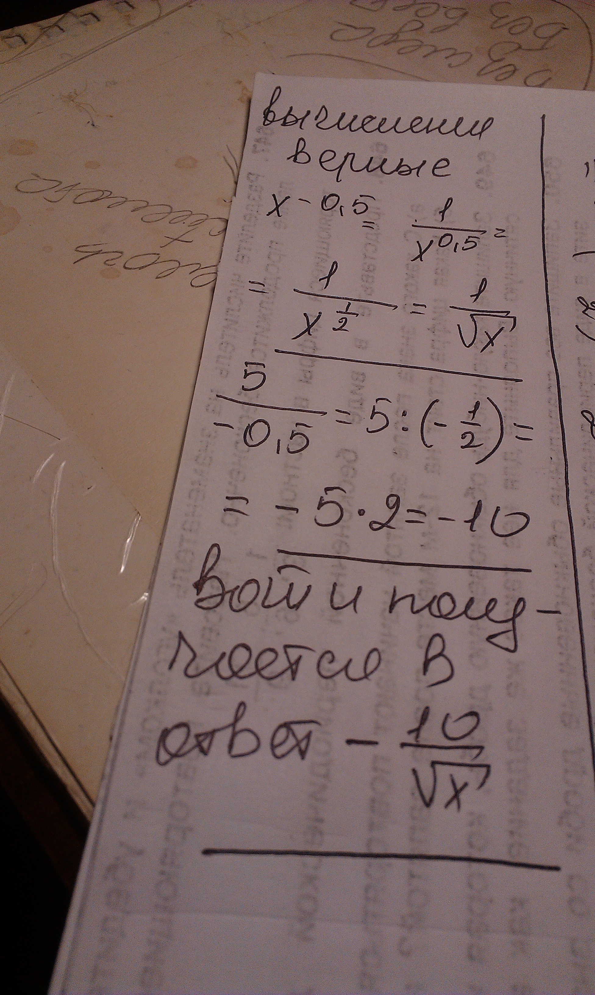 И если да как получились 10 делить на корень из х ?