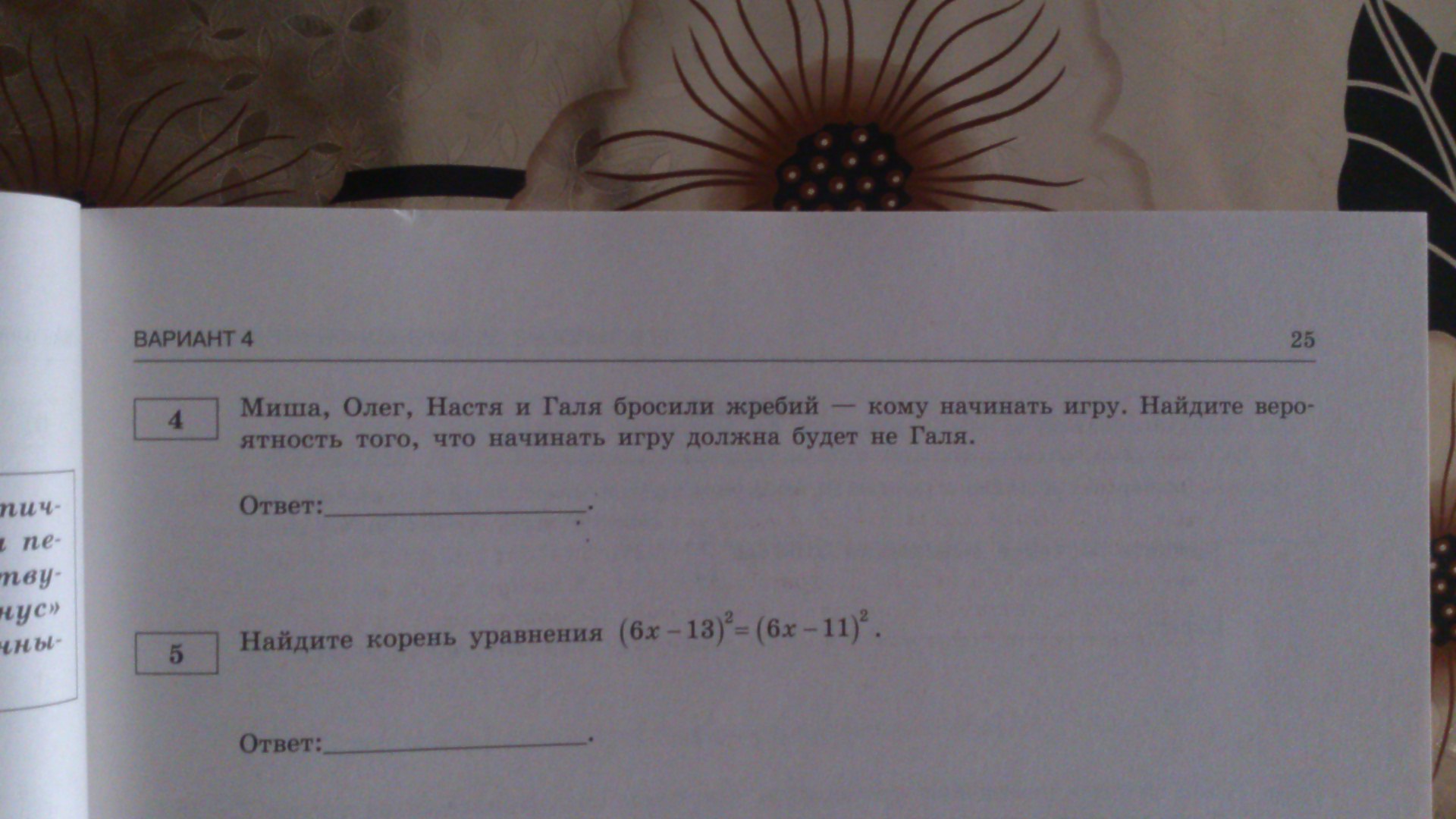 Всего 4 детей. Галя не должна начинать игру, следовательно, остальные могут начать. Находим вероятность: 3/4=0,75