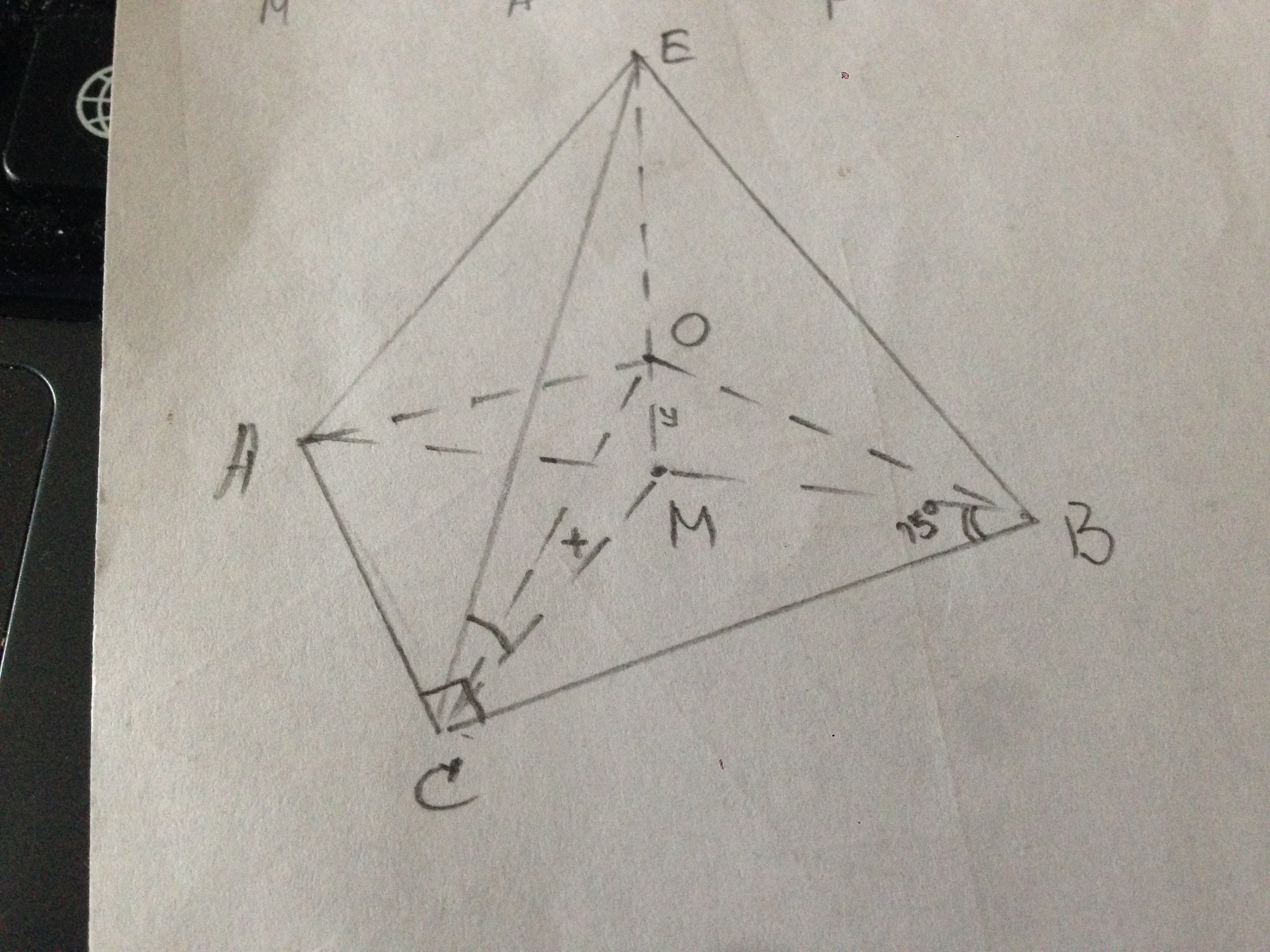 ЕАВС - пирамида, ∠С=90°, ∠В=15°.