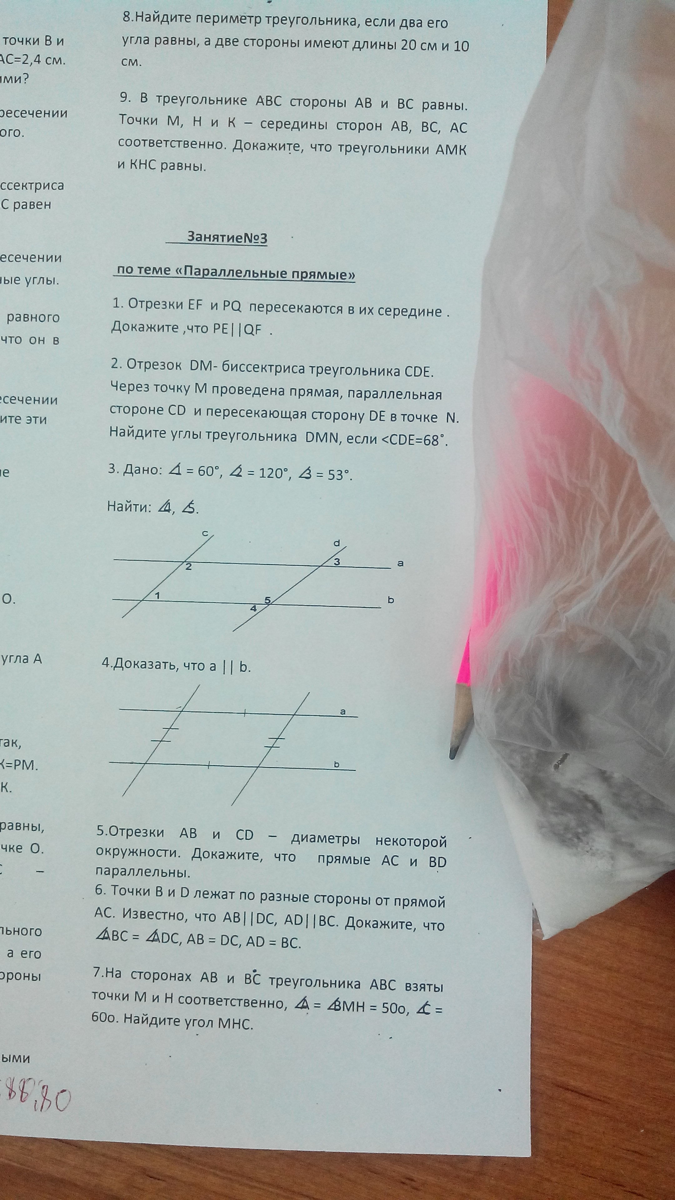 угол 5 равен 127 градусов так как он накрест лежащий с смежным углом №3 угол 4 равен 180-127=53 градуса так как он смежный с углом 5