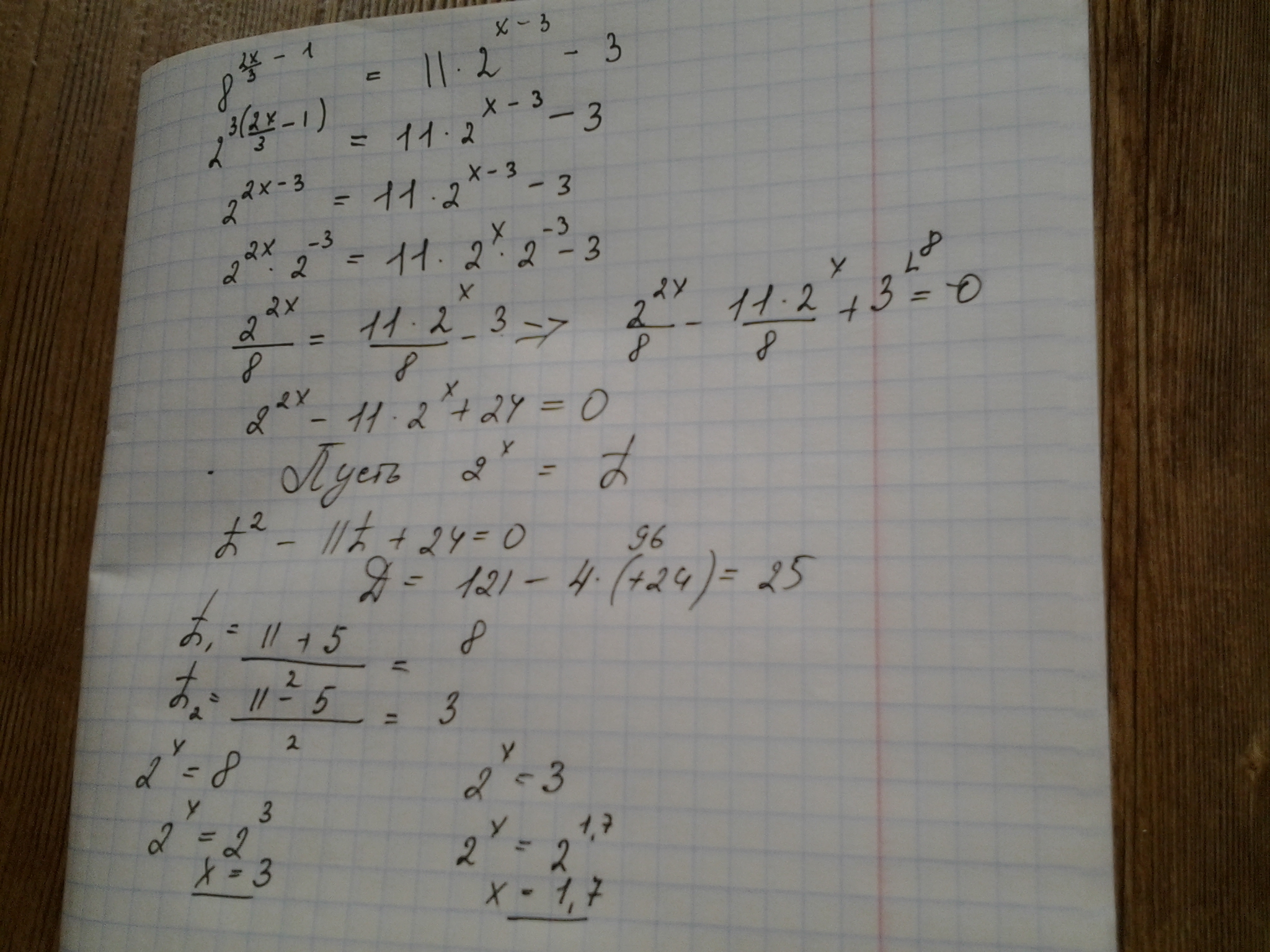 Ну, наверно как-то так. В конце ,где 2^x=3, в ответе я не уверенна, возможно, надо было так и оставить
