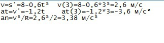 Материальная точка движется по окружности радиуса R=2 м согласно уравнению S=At+Bt2, где А=8 м/с; В=–0,2 м/с3. Найти скорость v, тангенциальное аτ, нормальное an и полное а ускорения в момент времени t=3 c