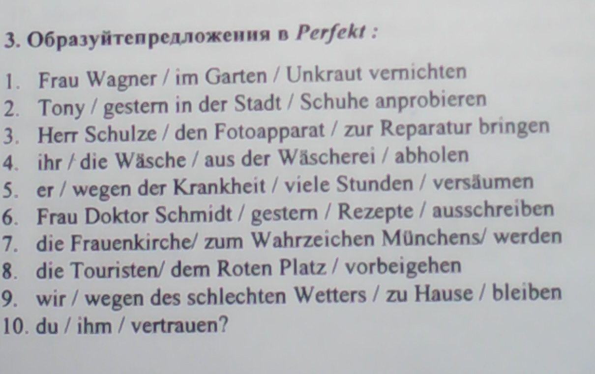 3. Herr Schulze hat den Fotoapparat zur Reparatur gebracht.