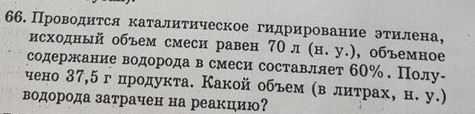 По условию задачи - водорода в смеси было 42 л, этилена 28 л
