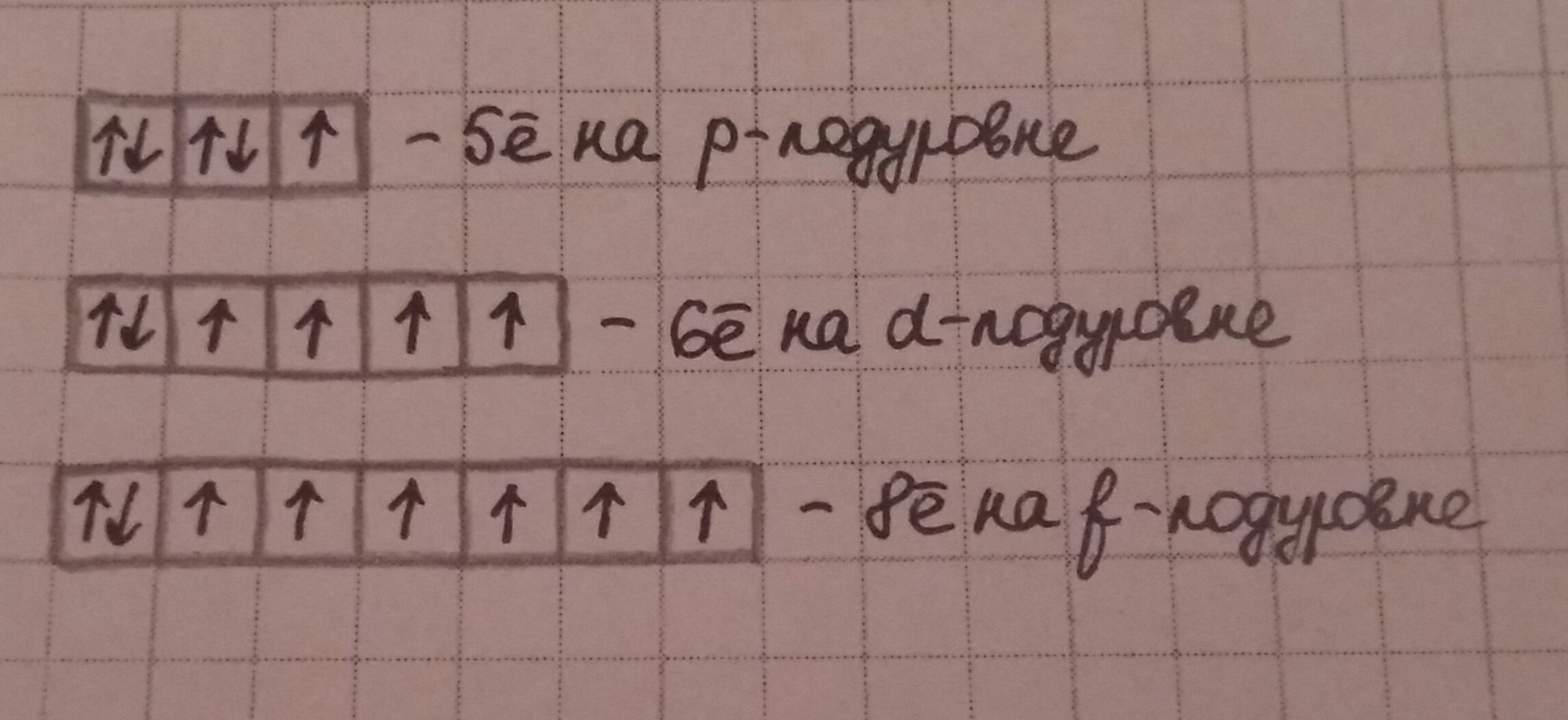 Представьте графической формулой и запишите расположение пяти электронов на p-подуровне,6- на d-подуровне,8 электронов на f-подуровне.