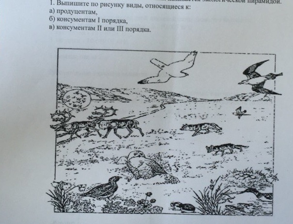консументы 2 и 3 - питаются теми, кто питается растениями (полярная сова, волк, чайка)