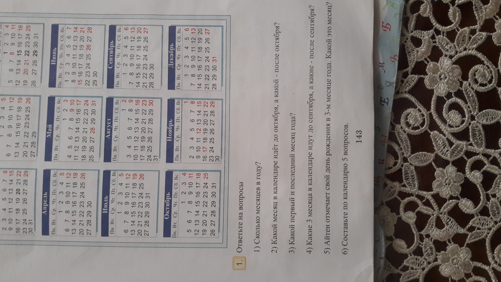1. Какие три месяца идут до мая и после него?