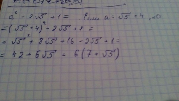 Знайдіть значення виразу a^2-2 sqrt 5+1 при a=sqrt 5+4