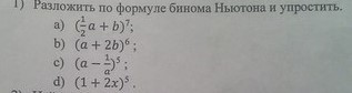 a) (a/2 + b)^7 = (a/2)^7 + 7*(a/2)^6*b + 21*(a/2)^5*b^2 + 35*(a/2)^4*b^3 +