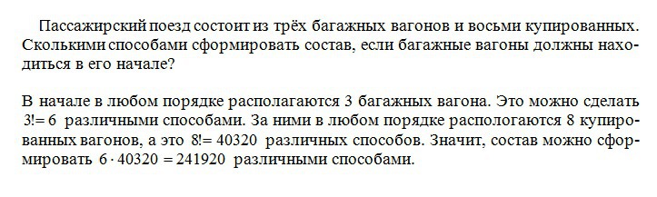 Пассажирский поезд состоит из трёх багажных вагонов и восьми купированных.Сколькими способами сформировать состав, если багажные вагоны должны находиться в его начале?