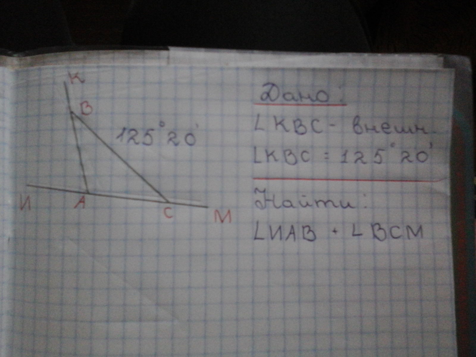 ∠B=180°-∠KBC=180°-125°20'=54°40'