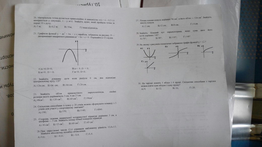 21. Если рожки направлены вниз, то a<0. Поскольку один корень, то Д=0