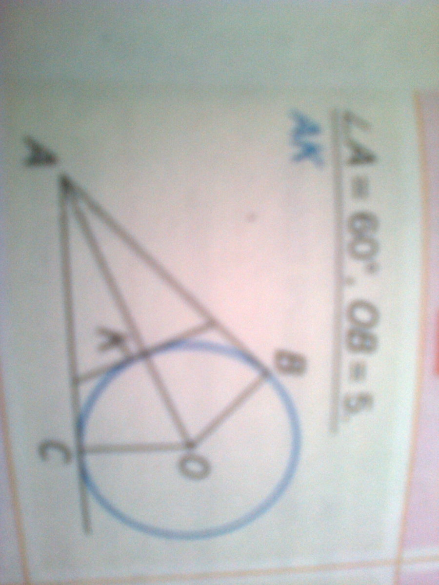 АС и АВ - касательные из одной точки к окружности. АО- бисектрисса угла А, значит ОВ - катет, лежащий напротив угла 30град. Тогда АО=2*5=10. ОК - радиус и ОК=ОВ=5, отсюда