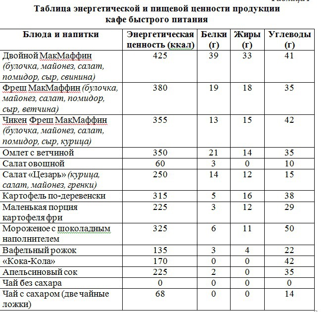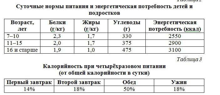 17-летний Николай в зимние каникулы посетил Самару. Перед экскурсией в Самарский художественный музей он позавтракал в местном кафе быстрого питания. Подросток заказал себе на первый завтрак следующие блюда и напитки: омлет с ветчиной, апельсиновый сок и порцию картофеля по-деревенски. Используя данные таблиц 1, 2 и 3, определите: рекомендуемую калорийность первого завтрака, если Николай питается четыре раза в день; реальную энергетическую ценность заказанного завтрака; количество углеводов в блюдах и напитках, а также отношение поступивших с пищей углеводов к их суточной норме.