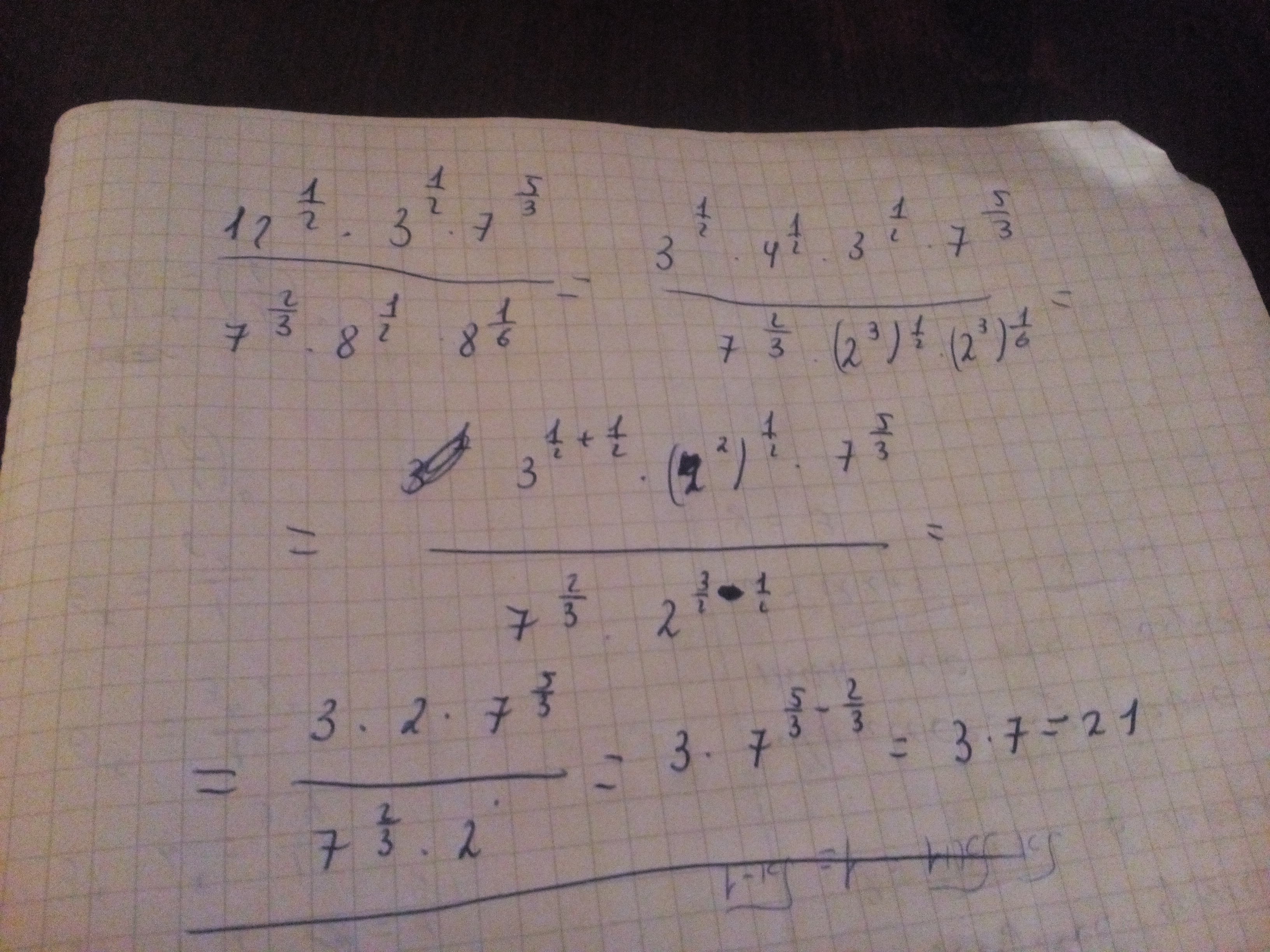 (2*3^(1/2) *3^(1/2)*7 =2 *3^(1/2 +1/2) *7 =14*3^(2/2) =14*3 =42