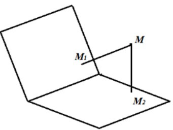 Угол между плоскостями равен 120. Точка М внутри угла удалена от каждой из граней на 8 см. Найдите расстояние между основаниями перпендикуляров, опущенных из точки М на каждую плоскость.
