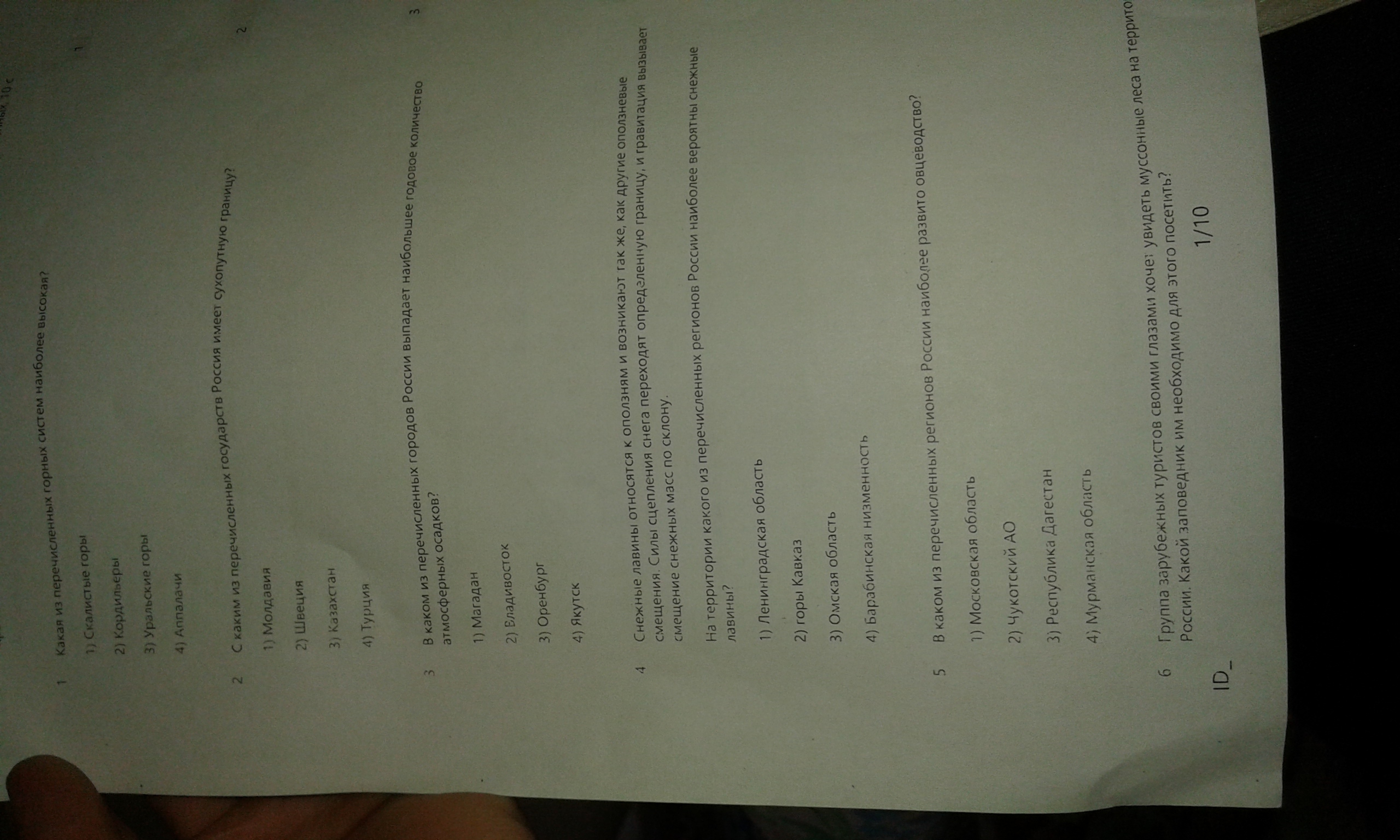 5) Ответ 3 - Республика Дагестан