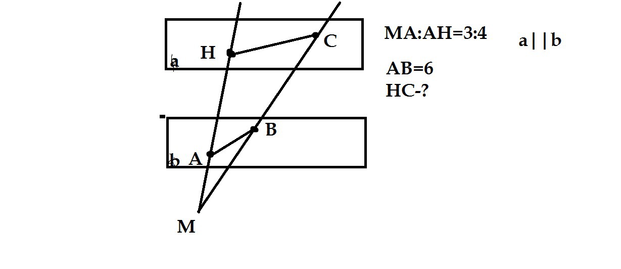 Пусть одна часть в предложенном отношении равна х, тогда МН=МА+АН=3х+4х=7х.