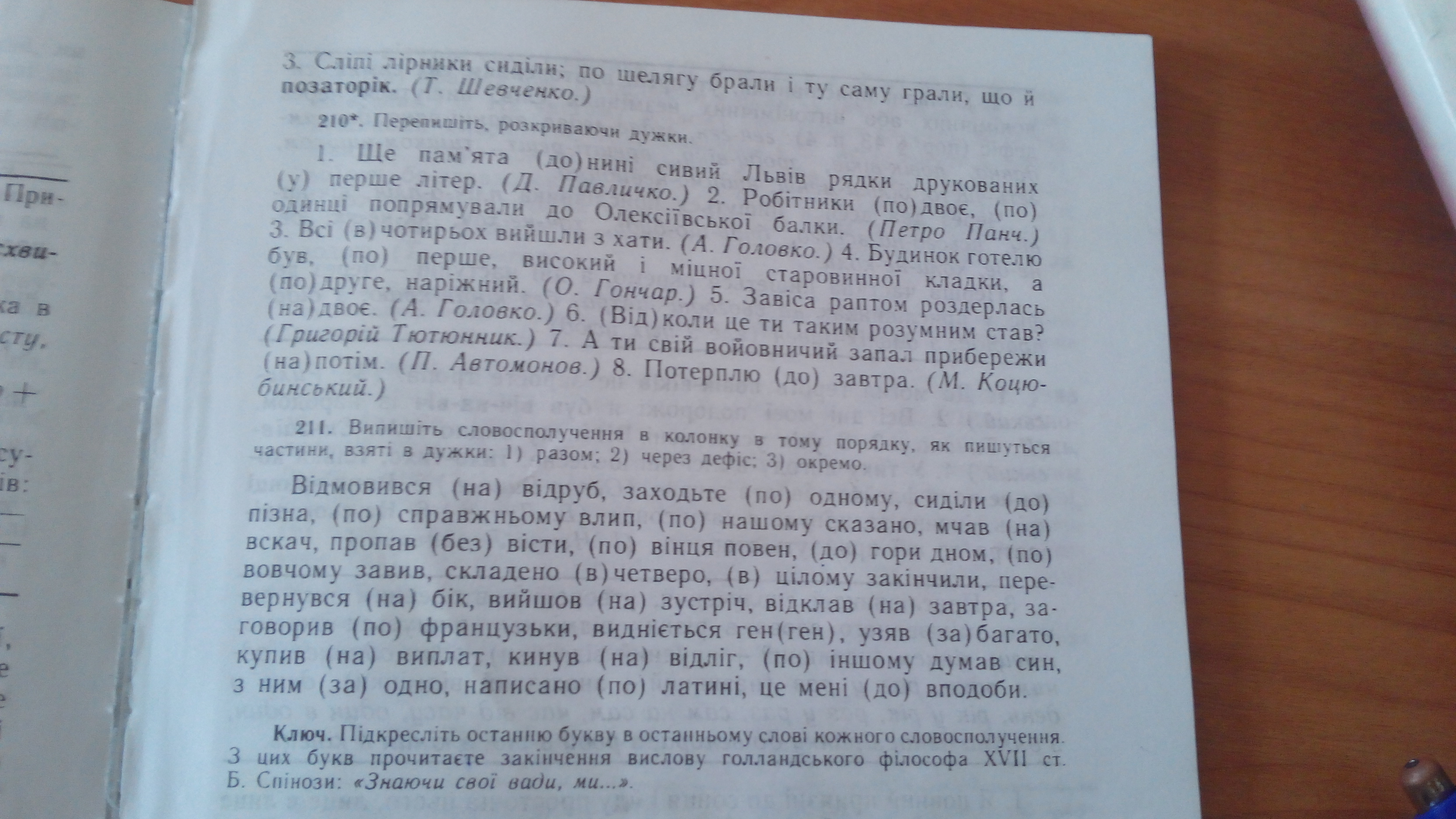 по-справжньому влип, по-нашому сказано, по-вовчому завив, заговорив по-французьки, видніється ген-ген, по-іншому думав син , написано по-латині, заходьте по одному, по вінця повен, в цілому закінчили, перевернувся на бік, відклав на завтра, купив на виплат, це мені до вподоби.