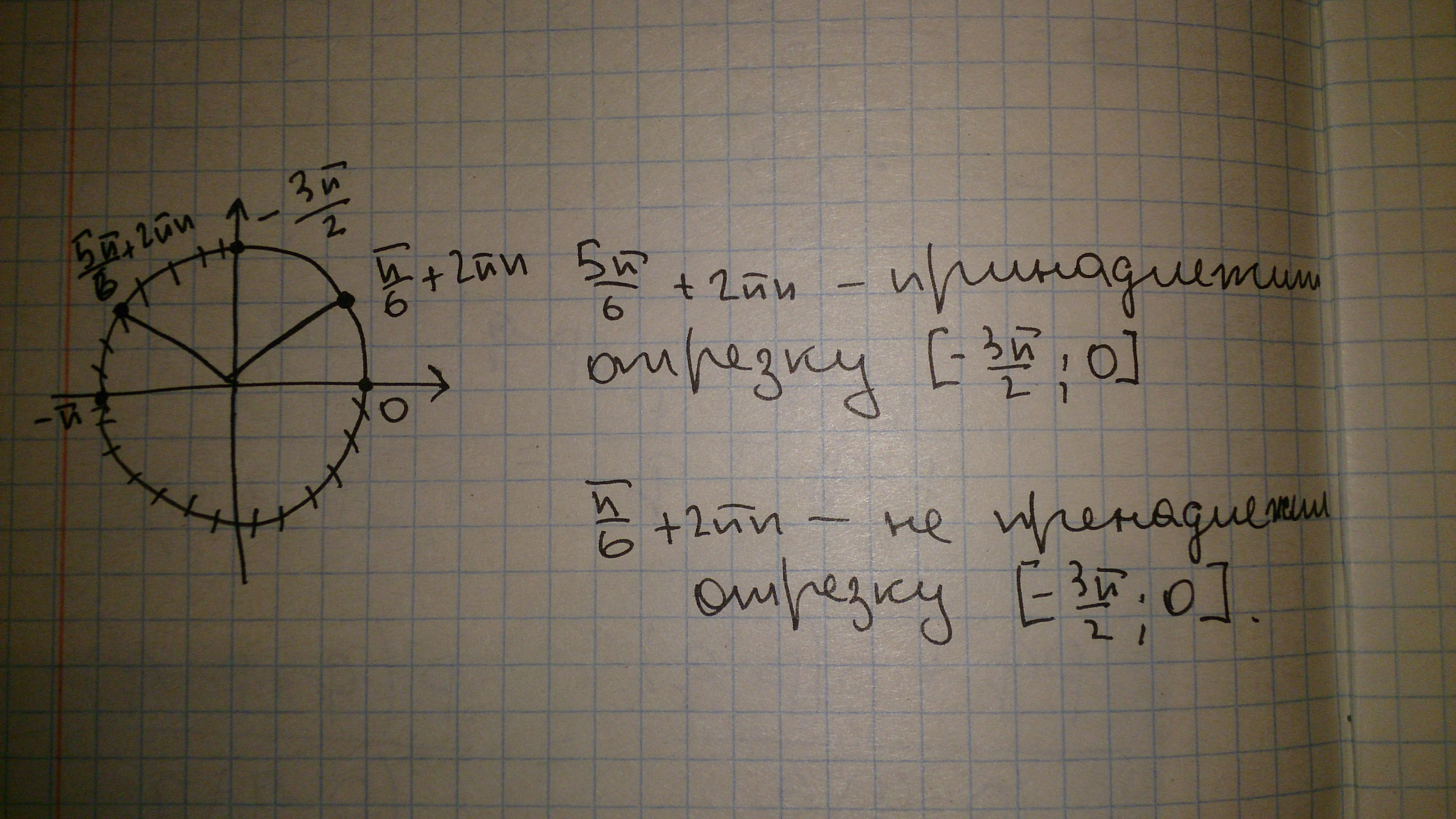 pi/6+2pin не принадлежит ; 5pi/6+2pin принадлежит.