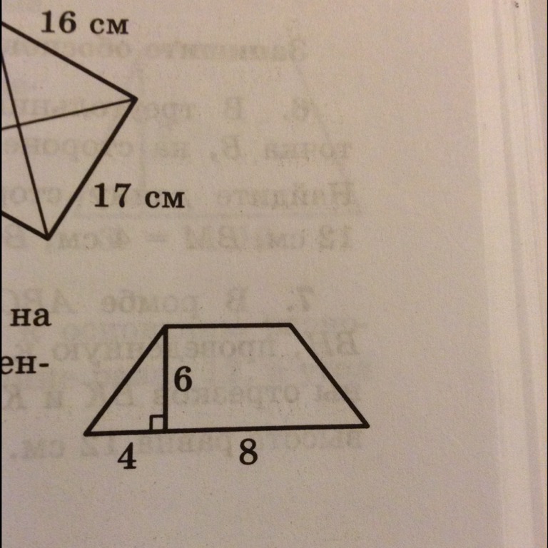 Используя данные ,указанные на рисунке ,найдите площадь изображённой ниже равнобедренной трапеции