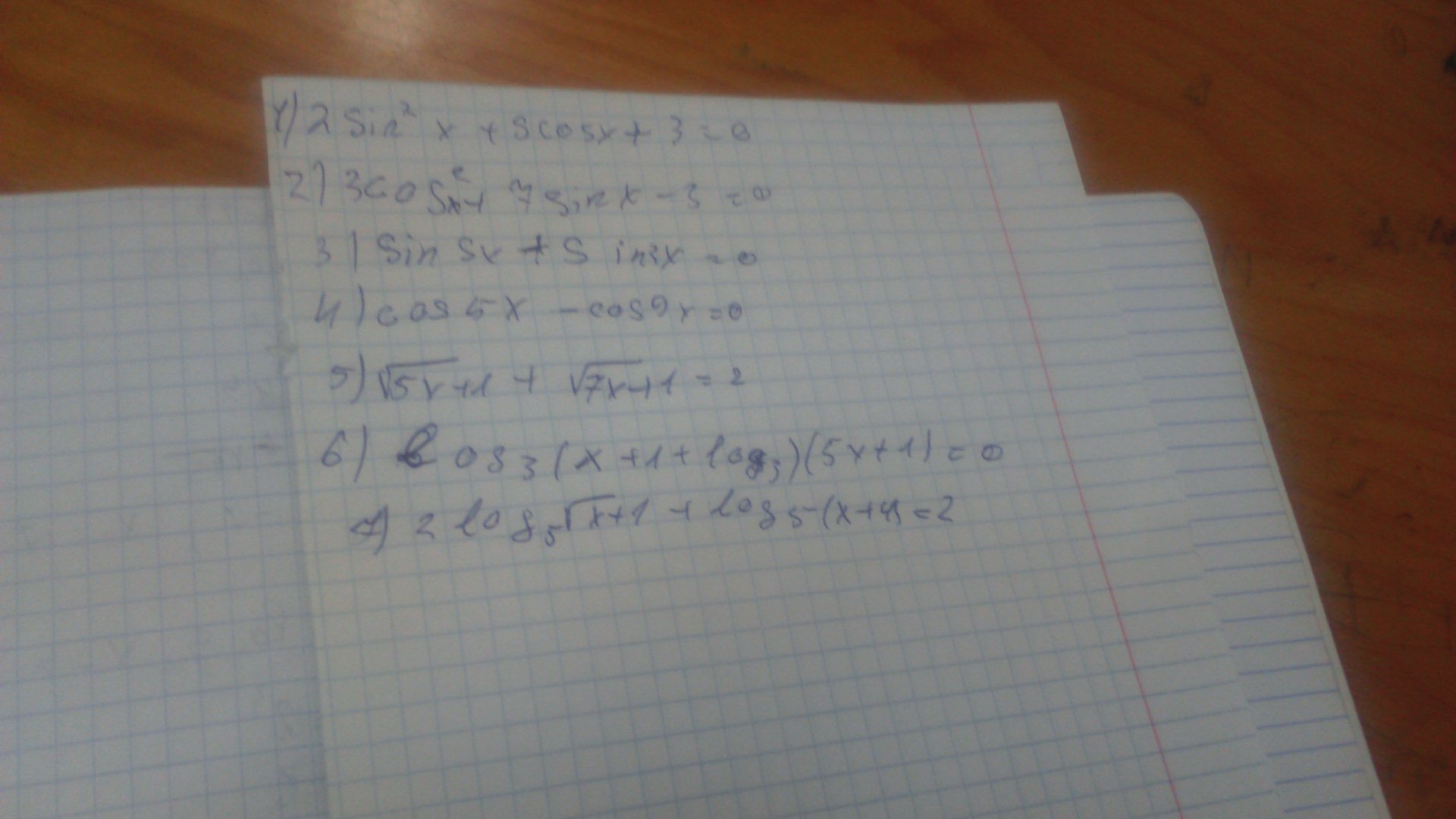 2) 3cos^2 x + 7sin x - 3 = 0