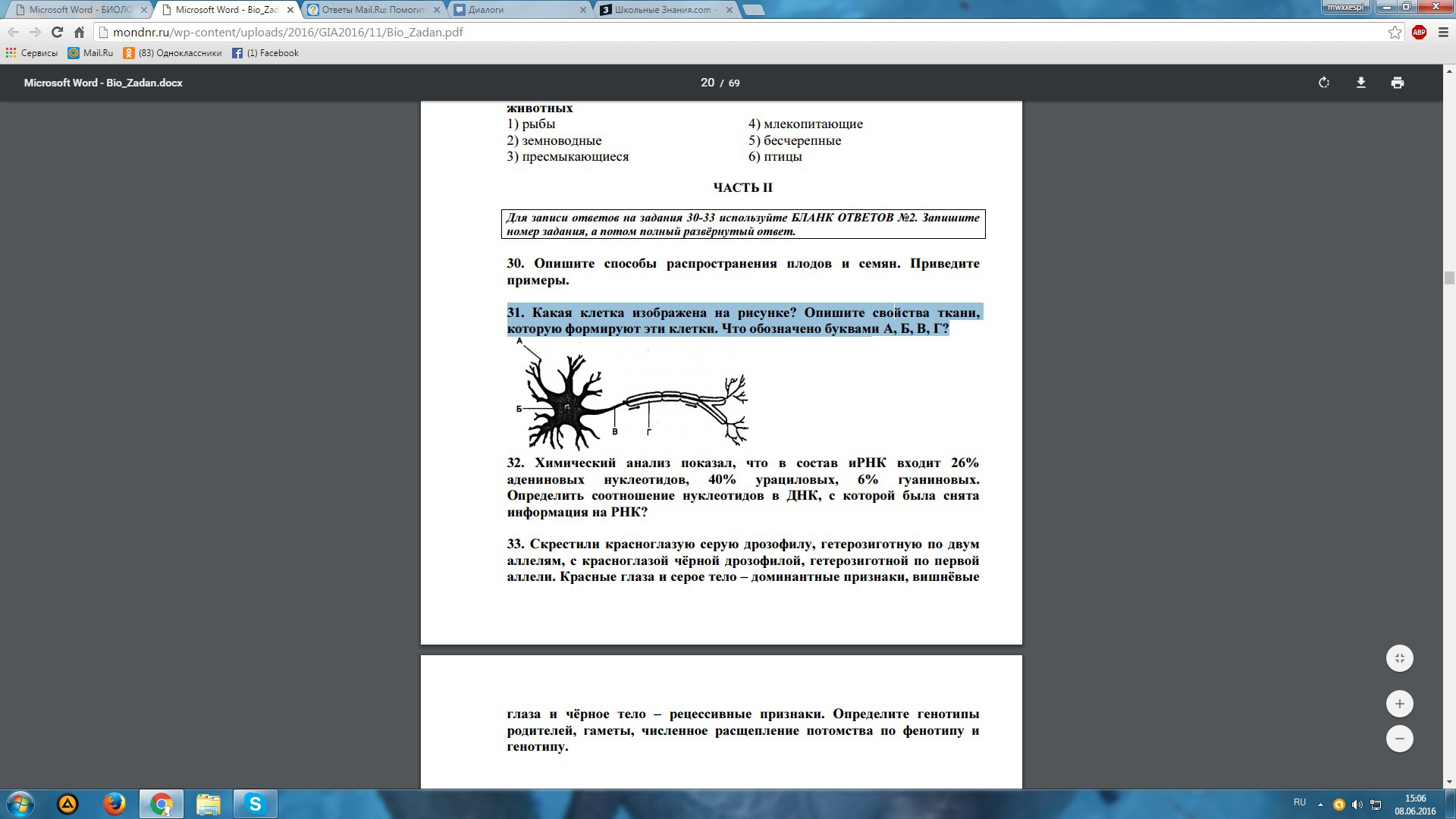 Помогите пожалуйста с биологией) Задание 31 на рисунке.