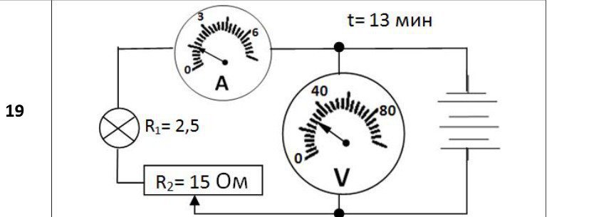 R1=2.5 Ом R2=15 Ом t=13 мин I=1.5 A U=28 B