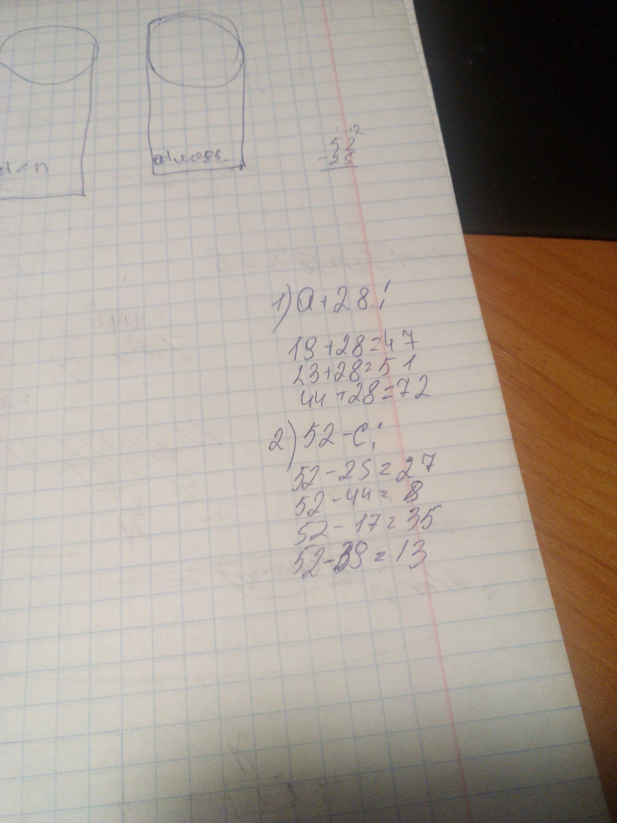 найди значение выражения 52-с=25,с=44,с=17,с=39