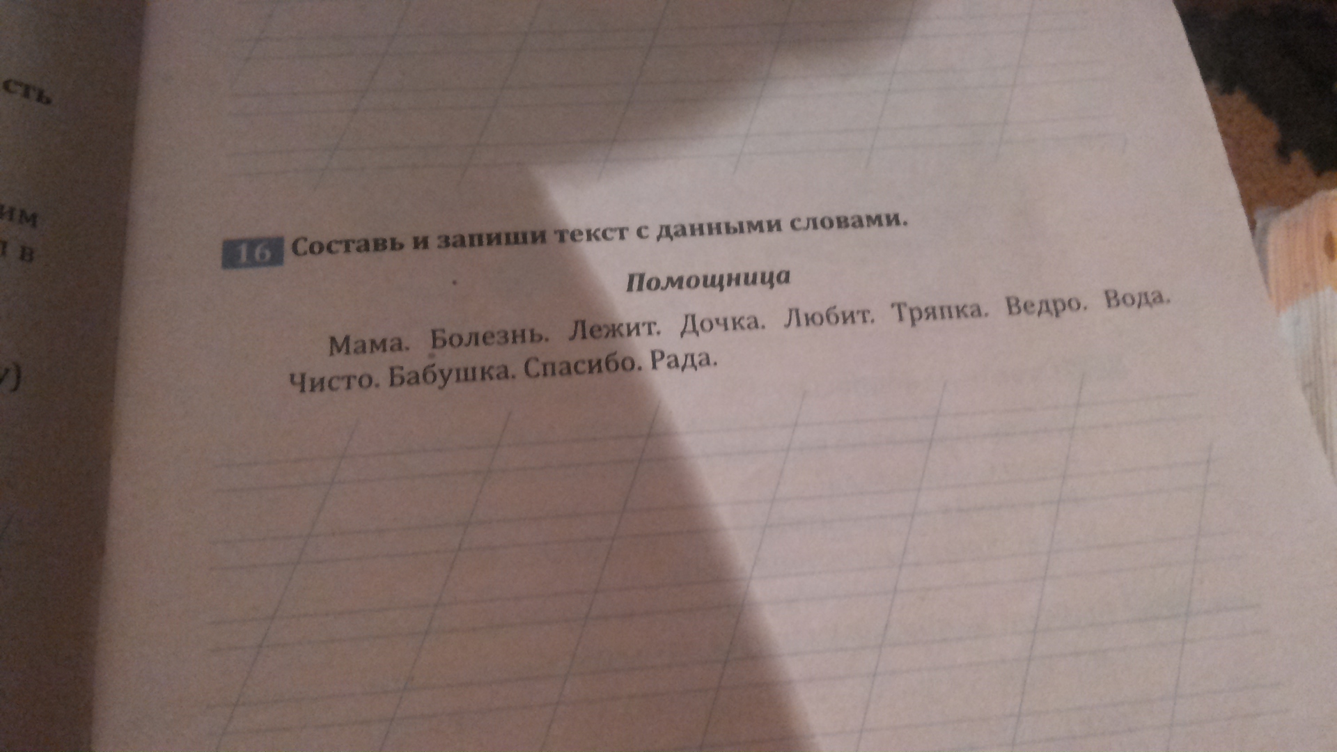 Мама заболела. У нее высокая температура, она просто лежит на диване. У нее есть заботливая дочка, которая решила убраться в комнате. Налила в ведро воды, взяла в руки тряпку и прибралась в комнате. Стало очень чисто. В это время к нам пришла бабушка, она увидела, как я постаралась и сказала: "Спасибо". Мама была очень радостна и счастлива, ведь у нее такая заботливая дочь.
