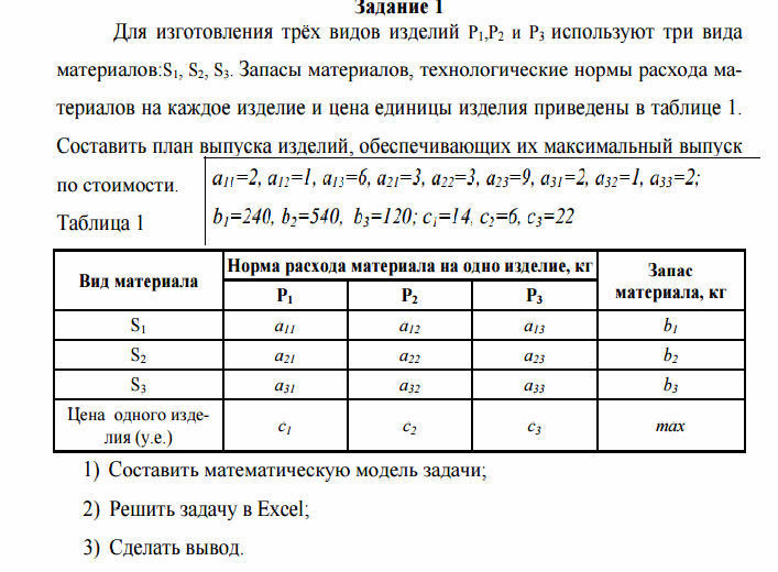 Для изготовления трёх видов изделий Р1,Р2 и Р3 используют три вида