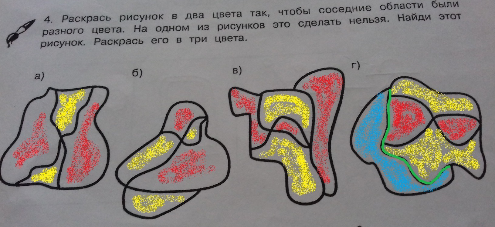 Ответил на Ваше задание. Под буквой г) фигура имеет общие области (граница выделена зеленым цветом).