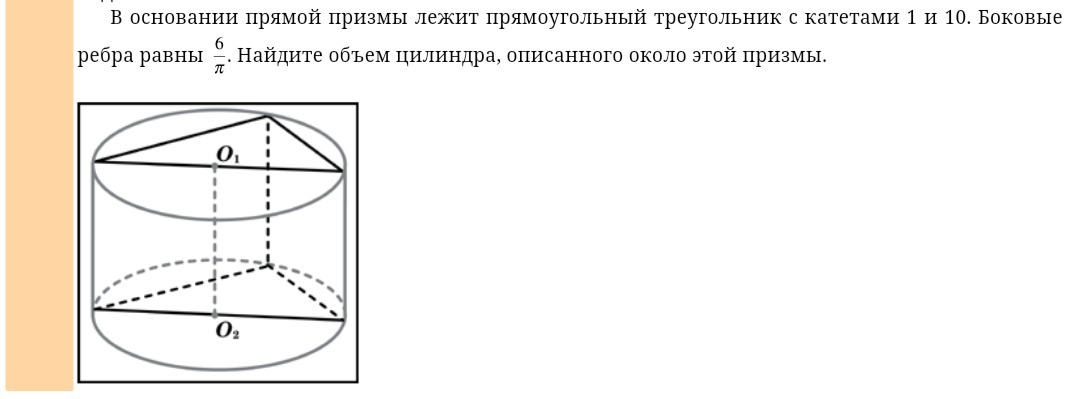 Гипотенуза прямоугольного треугольника будет диаметром основания цилиндра и будет равна √(1²+10²)=√101