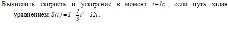скорость и ускорение в момент t=1с  если путь задан уравнением