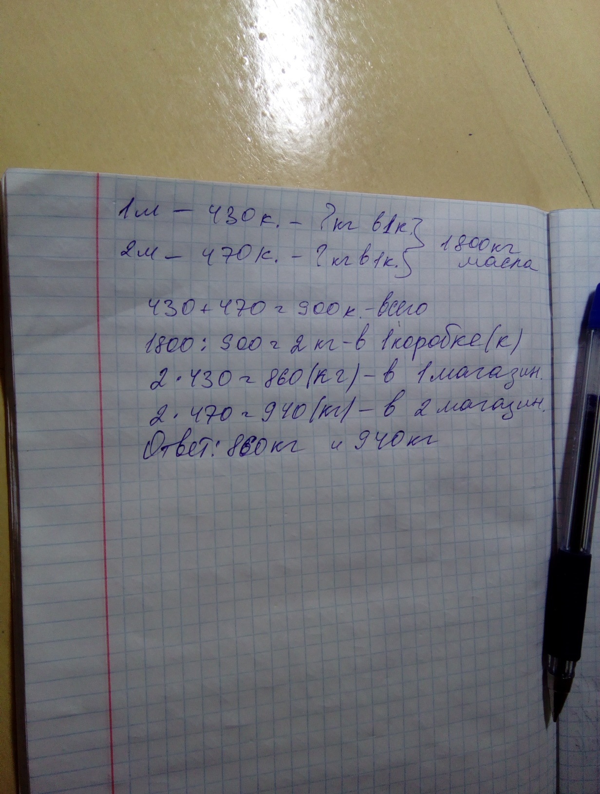 430+470=900 коробок всего