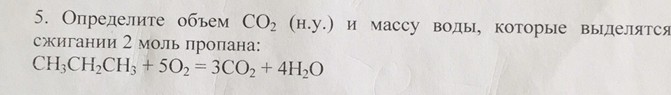 5. Определите объем СО и массу воды которые выделятся сжигании 2 моль пропана + 503 = +