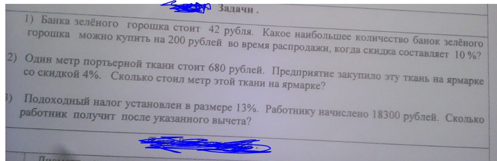 2) Метр ткани стоил 680 рублей. С учетом скидки от этой стоимости отнимается 4% от нее. То есть будет 680 - 680 * 0.04 руб = 652.8 руб.