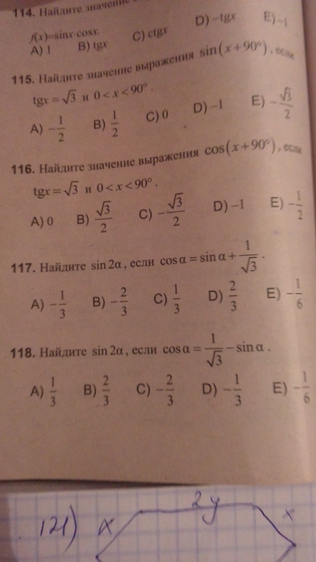 cosa=sina+1/√3 => cosa-sina=1/√3 возведем в квадрат: (cosa-sina)^2=(1/√3)^2 => cos²a-2*cosa*sina+sin²a=1/3 (по формулe: cos²a+sin²=1) => -2*cosa*sina=1/3-1 =>-2*cosa*sina=-2/3 (домножим на -1 чтобы применить формулу 2*cosa*sina=sin2a) 2*cosa*sina=2/3 => sin2a=2/3