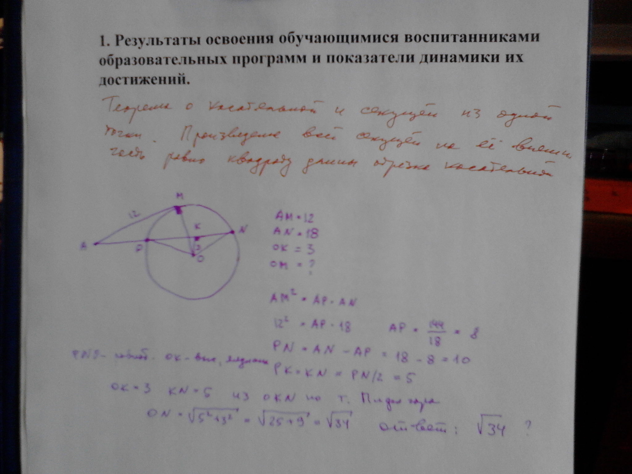 т.о. АМ*АМ=АМ^2 = AP*AN 12*12 = AP*18 AP=(12*12)/18 =8