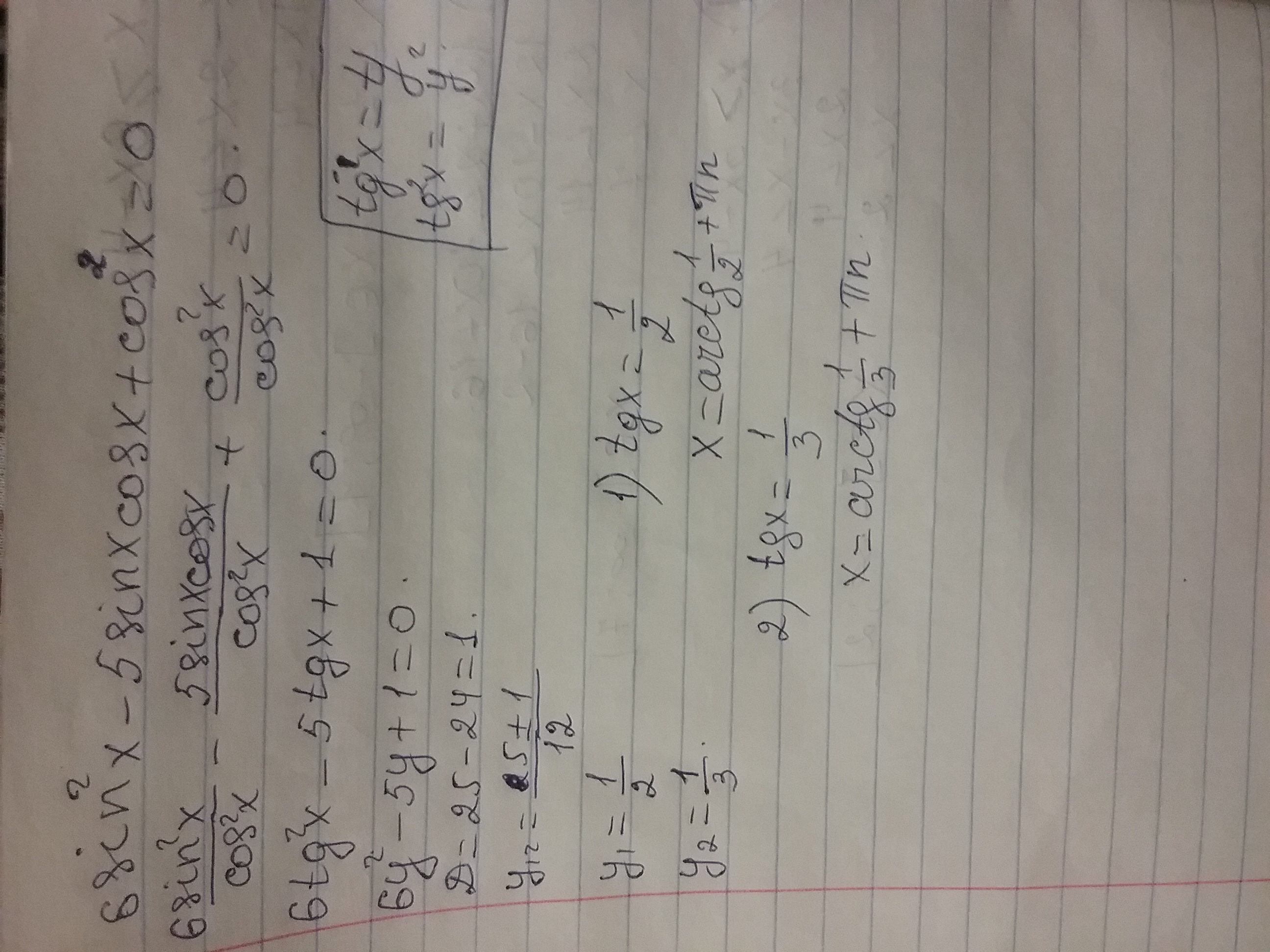 a1=(5-1)/12=1/3⇒tgx=1/3⇒x=arctg1/3+πn,n∈z