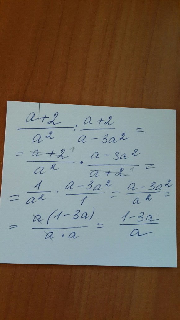 а+2/а² * a-3a²/a+2 =a-3a²/a² = a(1-3a)/a² = 1-3a / a