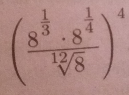 2. в числителе складываем показатели степени, приводя их к общему знаменателю, получим 8 в степени 4/12 умножить на 8 в степени 3/12, 8 в степени 7/12. В числители представляем корень 12 степени как 8в степени 1/12. Делении степеней с одинаковым основанием показатели вычитаются, 7/12-1/12 = 6/12=1/2, получаем 8 в степени 1/2, возводим все в 4 степень, показатели перемножаются 1/2-4 = 2, в итоге 8 в 2 = 64